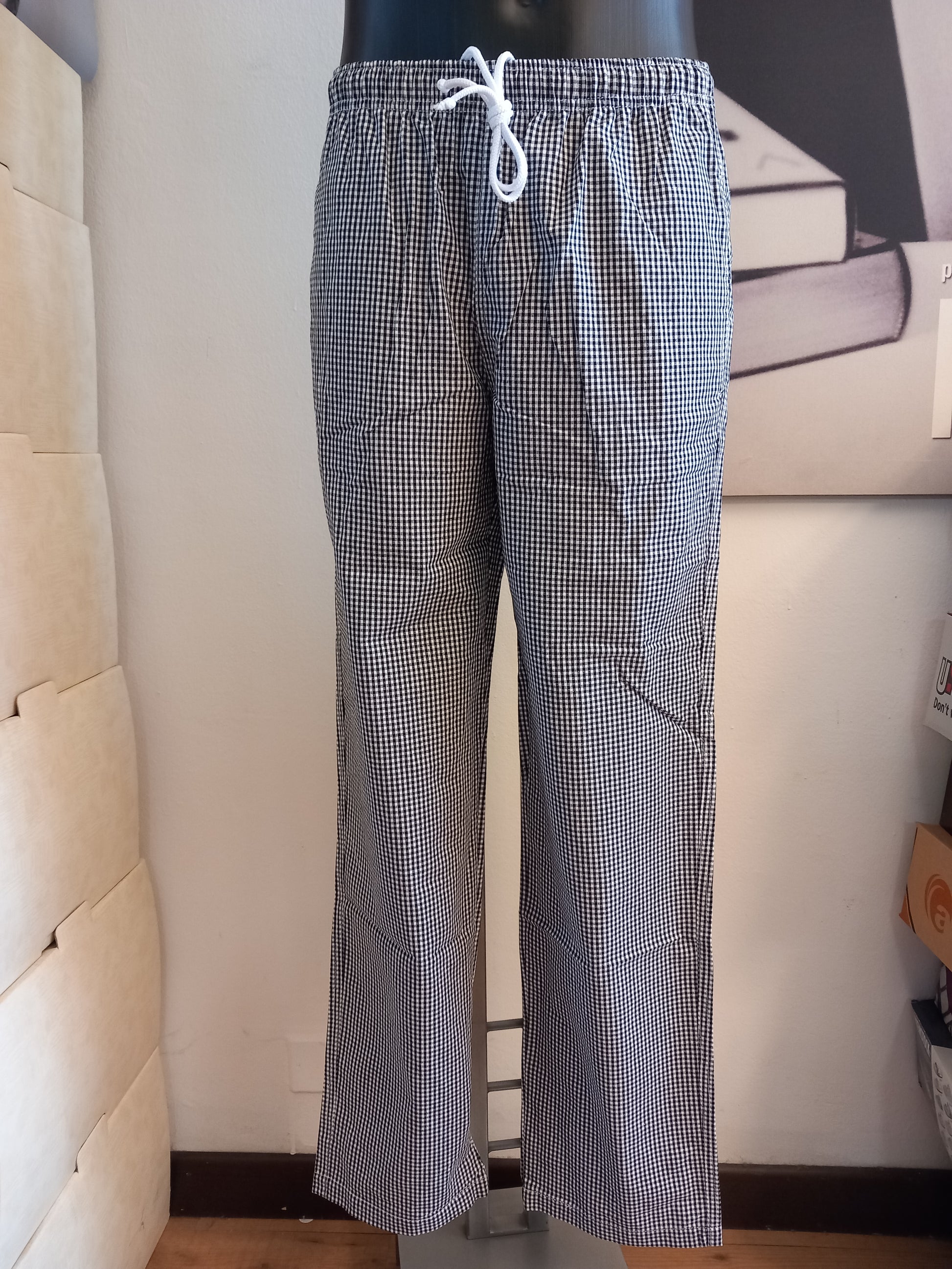 Pantalone a quadretti bianco/nero per cucina e laboratori food 100% cotone, comodo e resistente; ha l'elastico in vita e la coulisse per regolare la misura. abbiamo studiato la gamba piu' stretta così da rendere il pantalone di moda.
